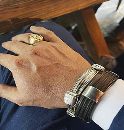 • Basada en las antiguas pulseras de pelo de elefante y los nudos africanos.