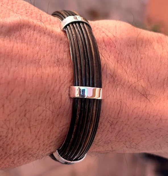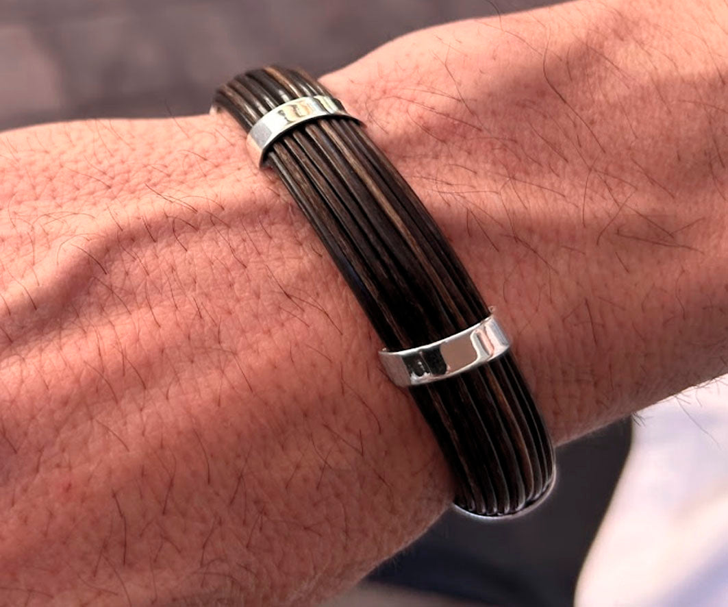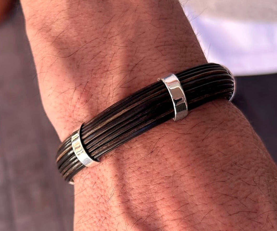 Pulsera Rígida Media Caña de Pelo de Búfalo Africano con Plata de Ley – Edición 25 Aniversario