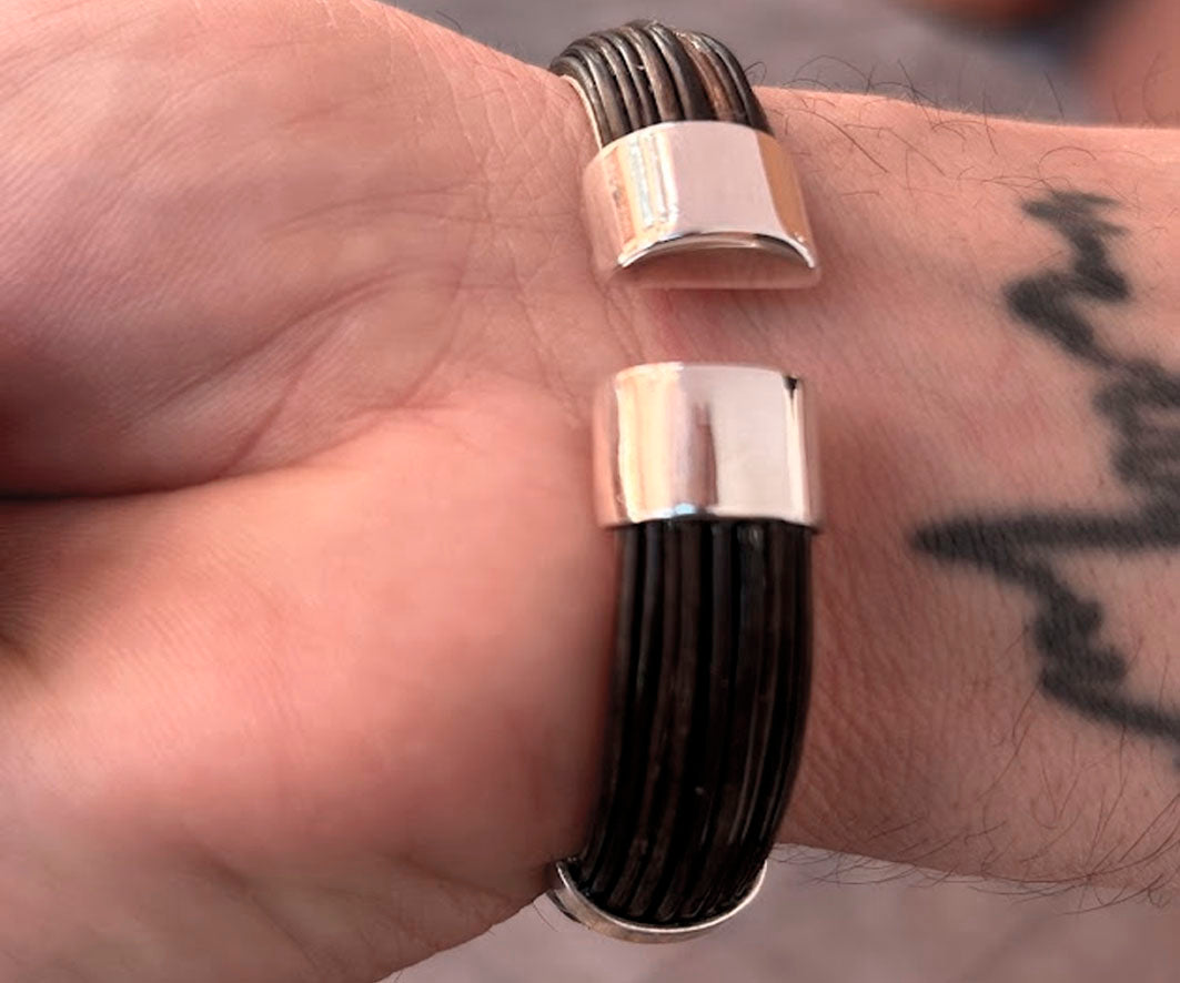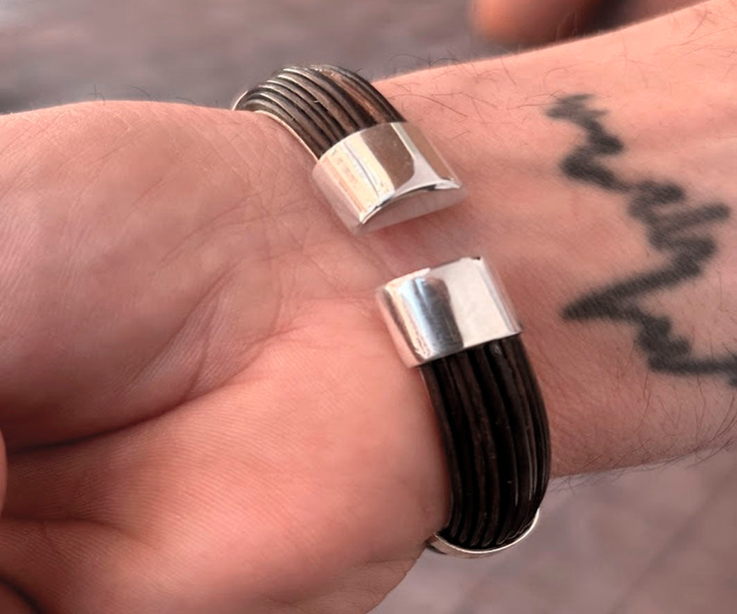 Esta pieza combina la fuerza de un material natural como el pelo de búfalo africano con la elegancia atemporal de la plata de ley 925 (22 kilates) , dando como resultado una joya única, sofisticada y con personalidad propia.