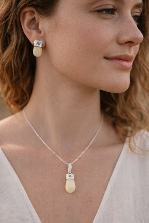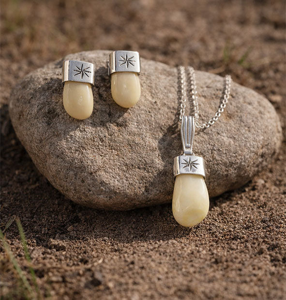 Haz una declaración de estilo auténtica con el Conjunto de Colgante y Pendientes de Perla de Venado en Plata de Ley de Joyas de Caza.